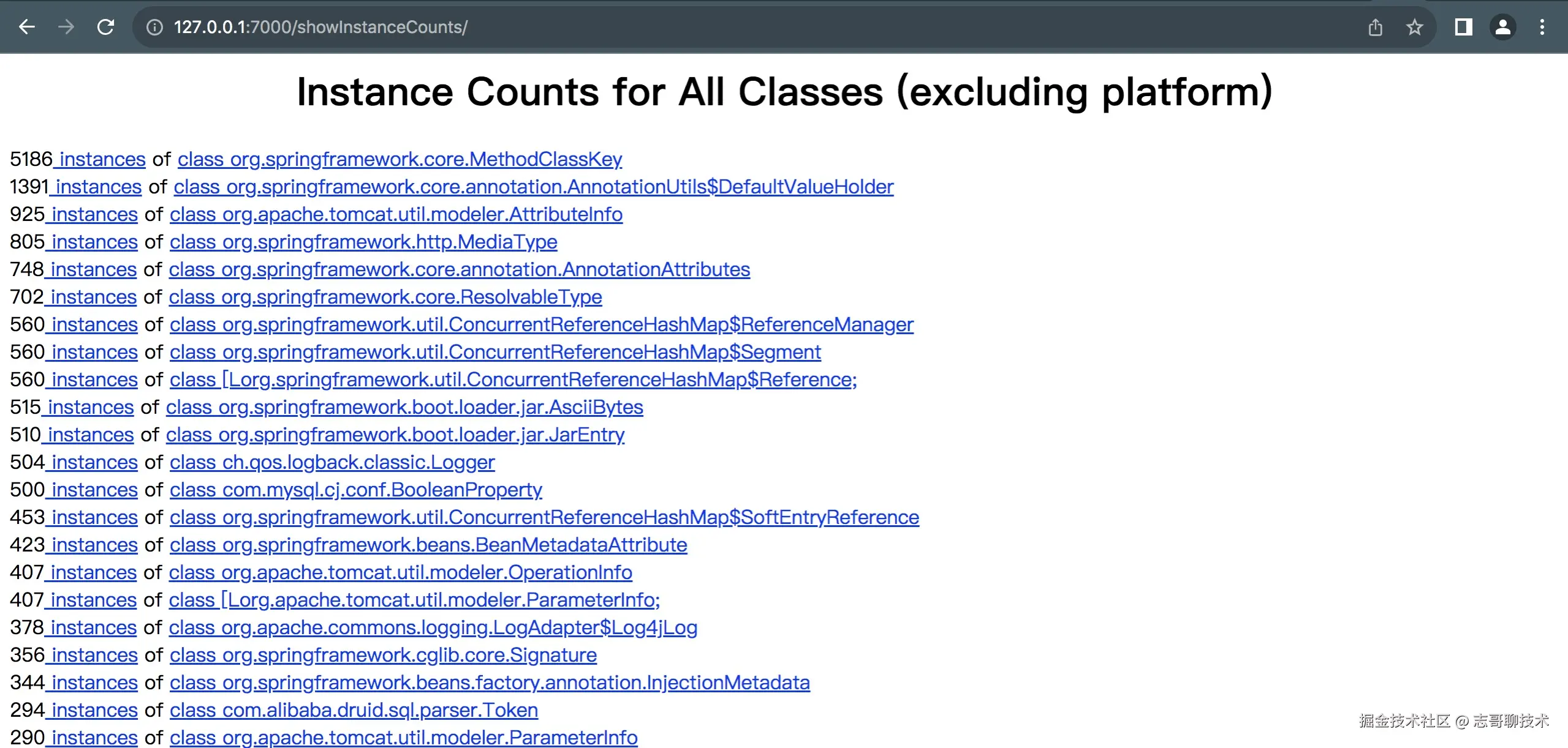 - Show instance counts for all classes (excluding platform):表示平台外的所有对象信息