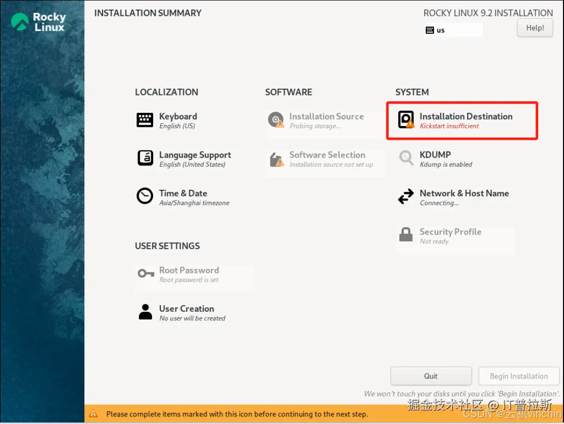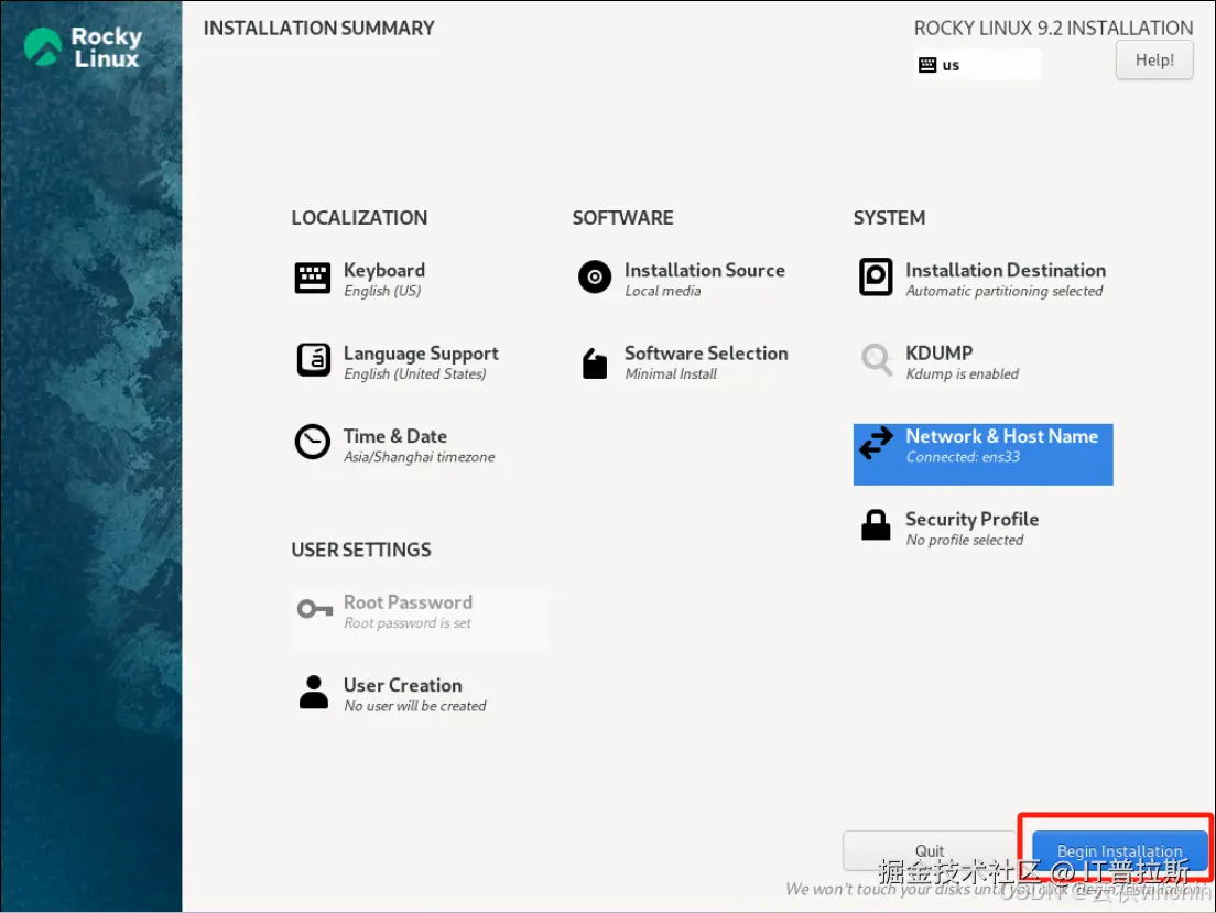 其他项默认配置,点击【Begin installation】开始安装,如图13