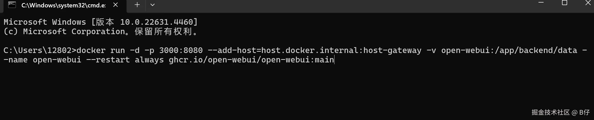 docker run -d -p 3000:8080 --add-host=host.docker.internal:host-gateway -v open-webui:/app/backend/data --name open-webui --restart always ghcr.io/open-webui/open-webui:main