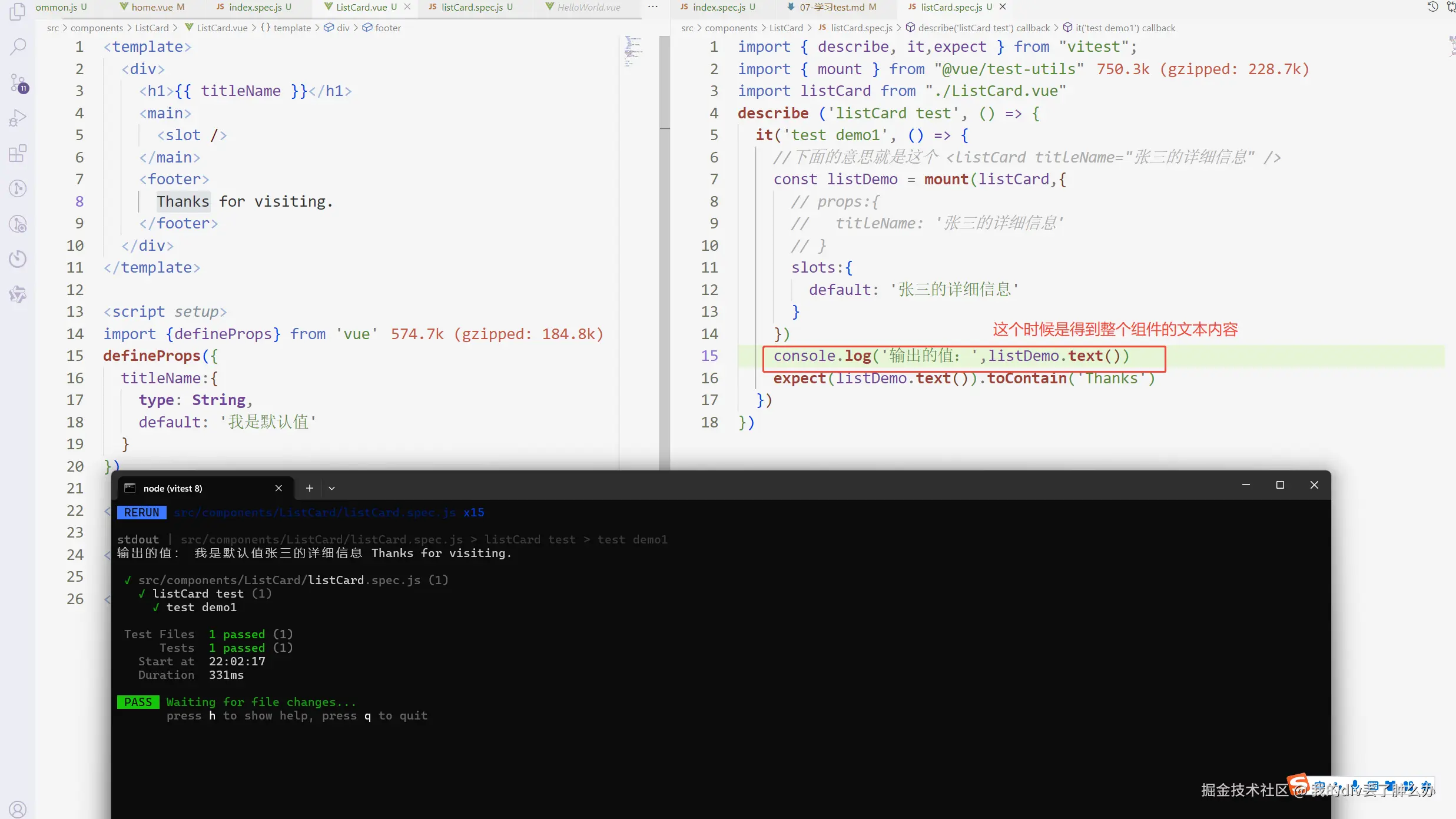 然后再通过 toContain验证是否包含我们设置的html元素。