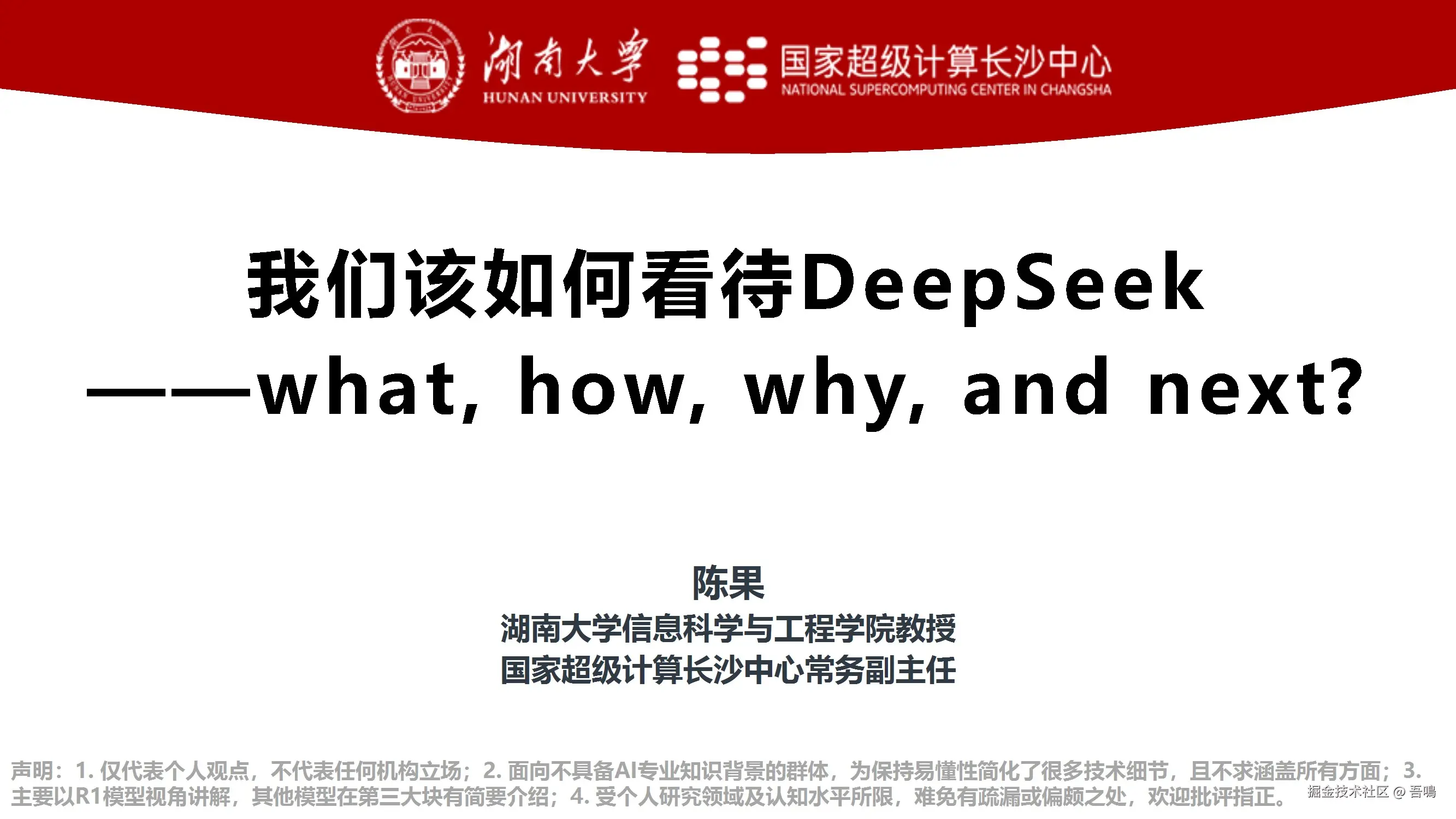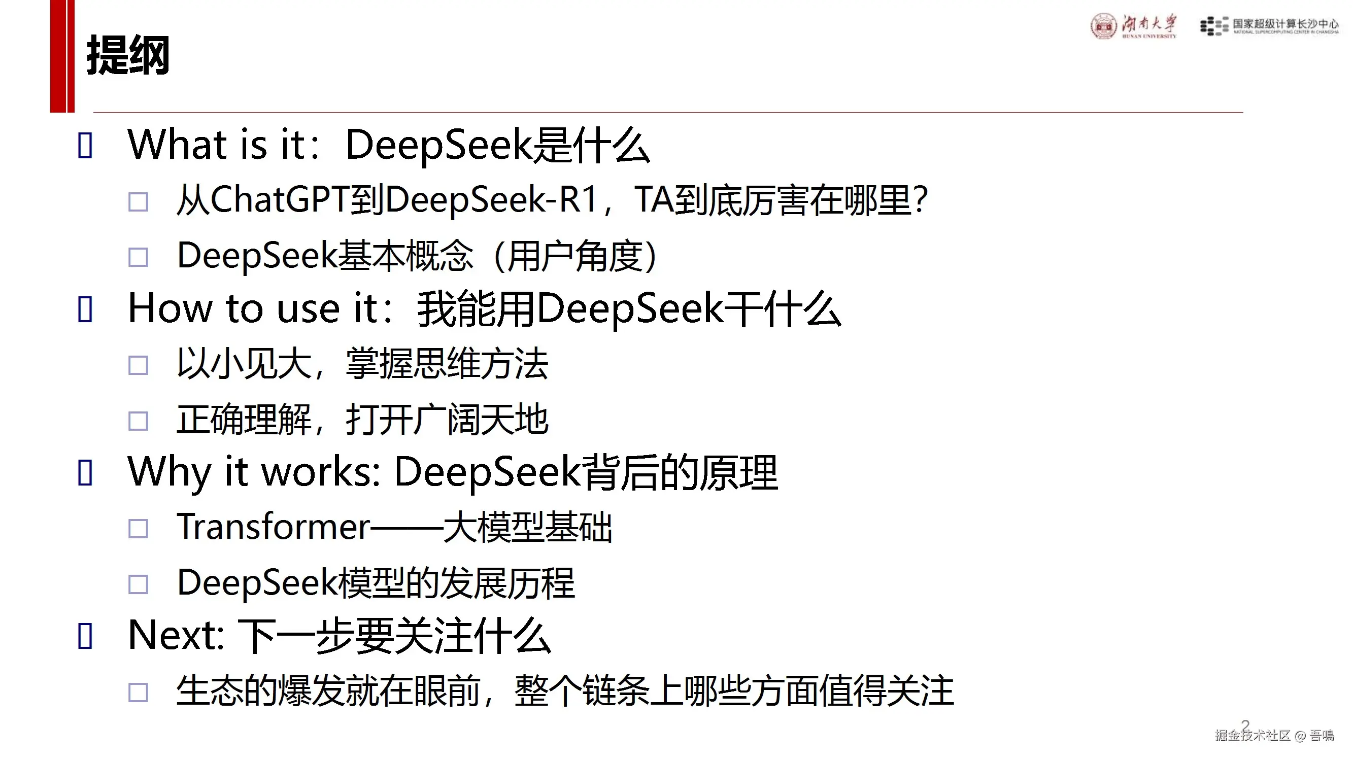 今天给大家分享一份由湖南大学出版的DeepSeek教程——《我们该如何看待DeepSeek——what, how, why, and next》。教程一共有82页PPT,个人觉得讲得还是很深刻的,在此分享给大家,文末有完整版下载地址。