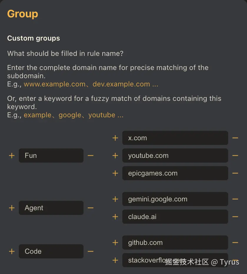 - 灵活分组规则:Tabbiy 默认根据当前浏览器标签的域名进行分组,同时你还可以在设置中自定义自动分组规则,满足个性化需求。