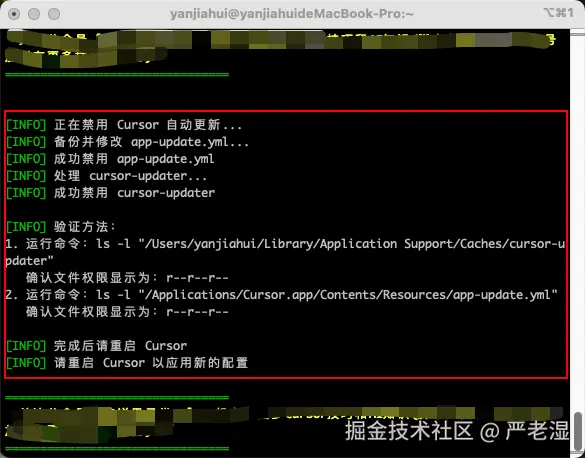 回车执行命令后,会让你输入密码,后面将你本地的 Cursor 关闭。这都是正常的,直到,看到下面的提示,即代表已经执行完毕了。
