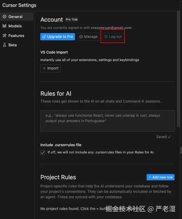 1. 退出 Cursor 账号
