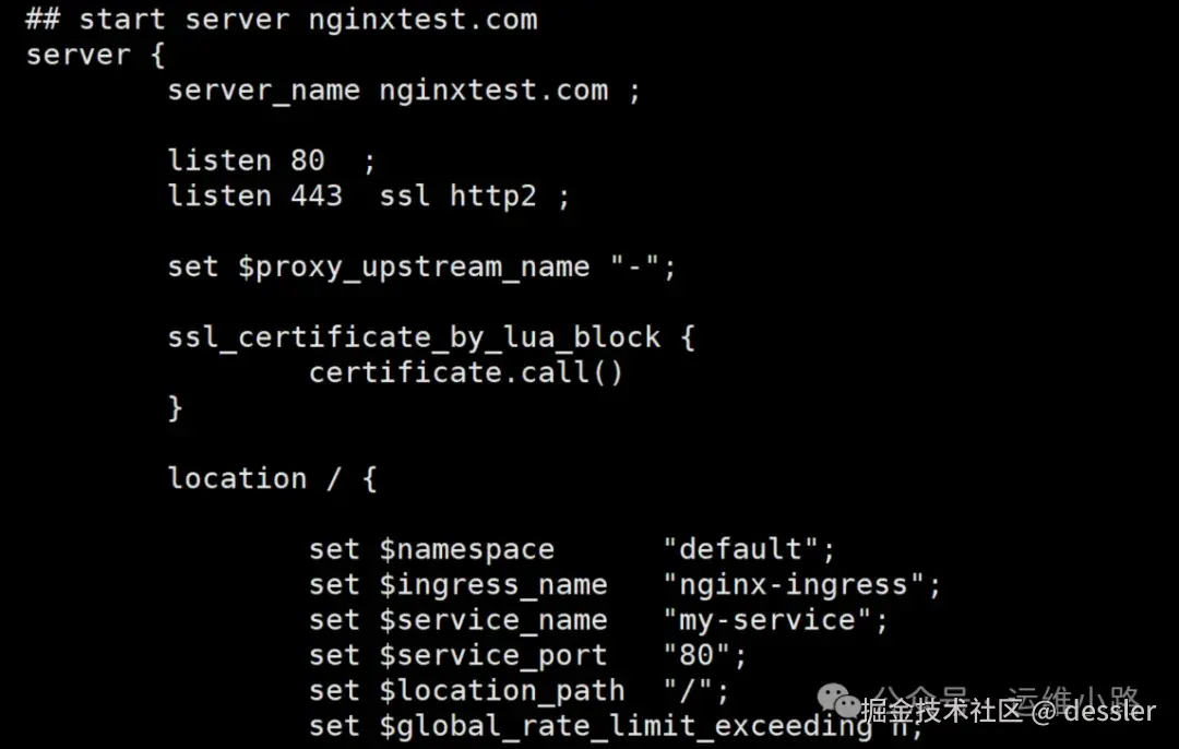 由于我们采用的这个ingress是nginx的,所以实际上ingress规则在内部就是nginx的一个sverver配置,然后代理到后端的我们配置的服务。