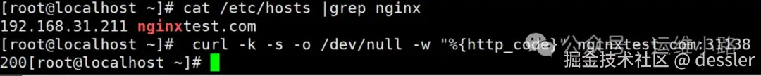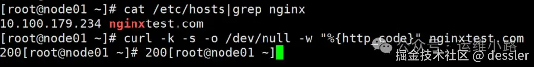 这里是做的hosts到ClusterIP,这里只取了访问代码,正常返回成功200代码。