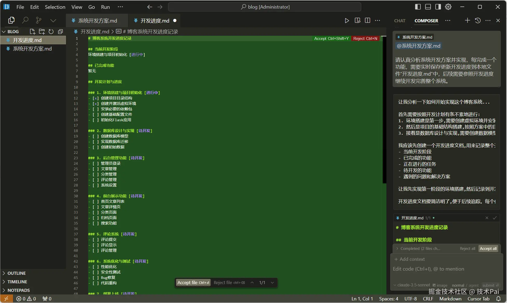任务: 开发一个简洁但功能完整的个人博客系统