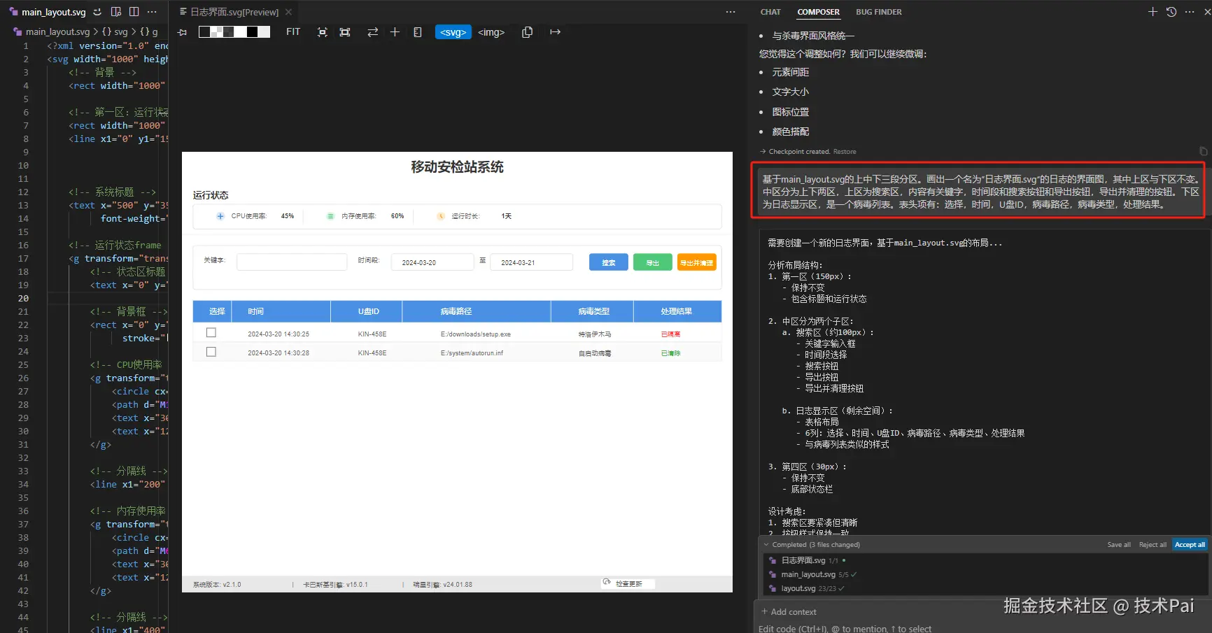 铺垫后面章节,体现AI提示词质量重要性,同时说明,AI编程工具可以开发高质量交互高质量UI设计的系统。