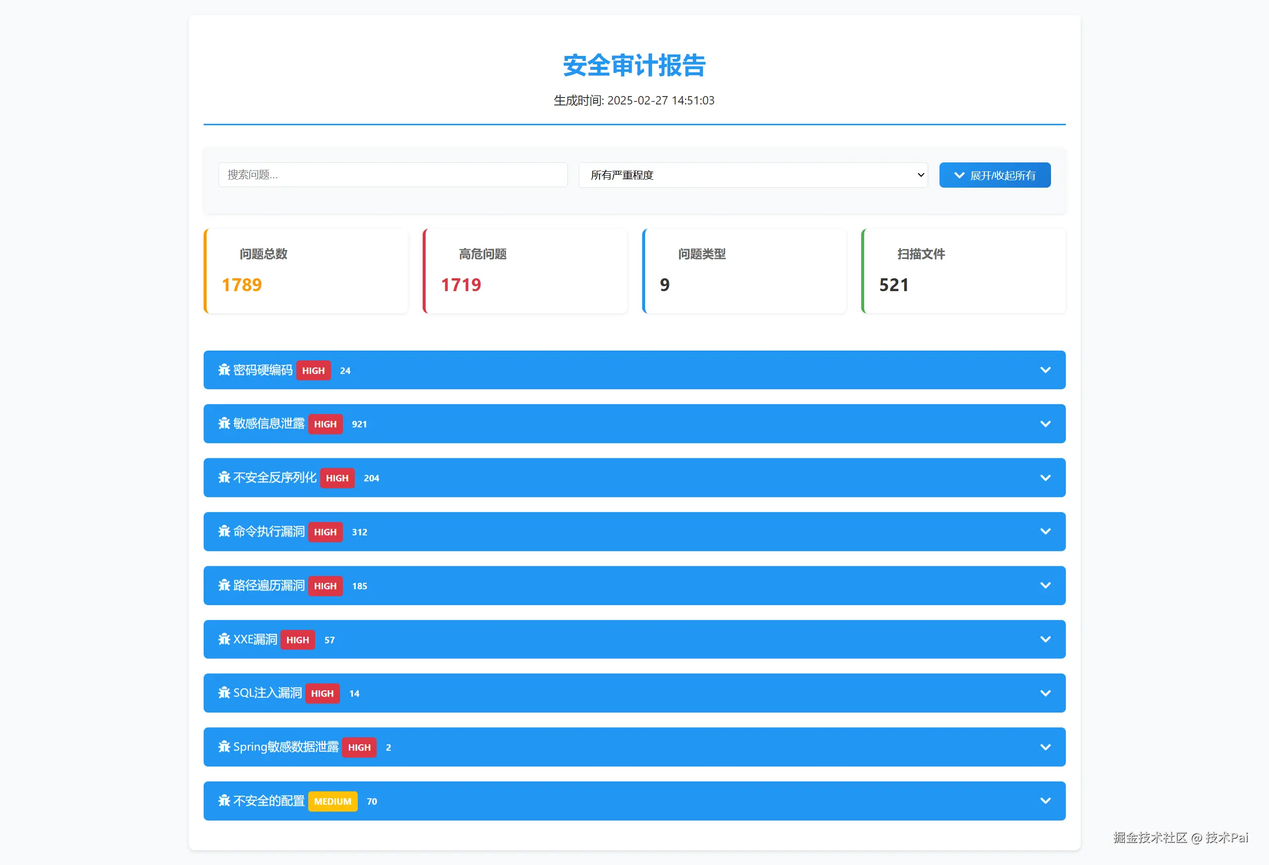 一个基于Python开发的通用代码漏洞审计工具,支持Java、PHP、Python、Go等多种编程语言的代码安全扫描。该工具通过预定义的漏洞特征模式,可以快速识别代码中的SQL注入、命令执行、XXE、反序列化等常见安全漏洞,并提供详细的扫描报告。工具采用多线程设计,支持大规模项目的并行扫描,具有较好的扩展性和实用性。