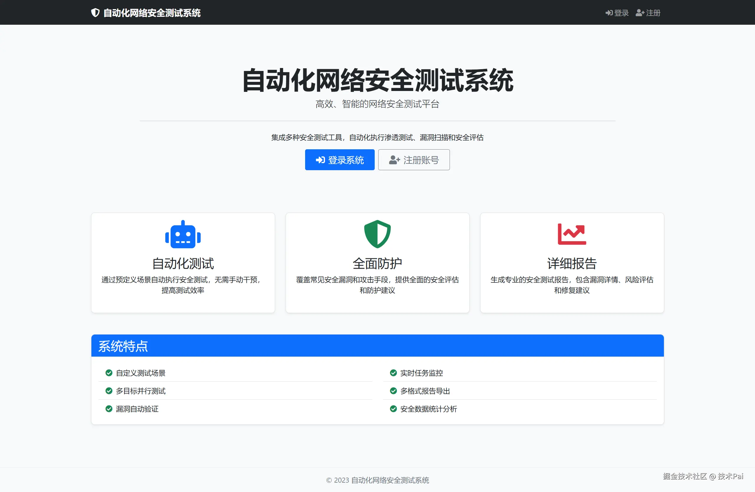 一个基于Python+Flask的自动化网络安全测试系统,结合ATT&CK攻击框架,通过可视化界面实现安全测试场景的编排和执行。系统采用多角色设计,支持测试模块的灵活组合和条件执行,内置丰富的安全测试功能,可进行漏洞扫描、渗透测试等安全评估工作。系统提供专业的测试报告生成功能,支持结果的可视化展示和分析,是一个完整的安全测试自动化解决方案。