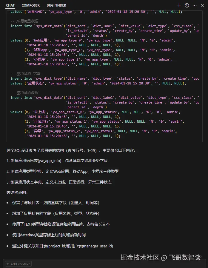 基本的sql生成大家应该都有预期,但是除了这些,Cursor 还帮我们: