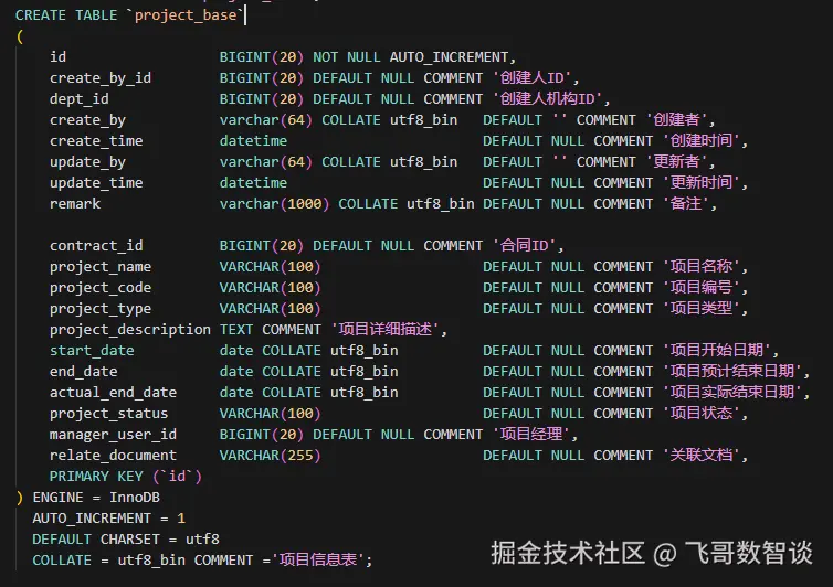 - 按照规范生成了表中的审计字段(create_by、create_time等)。