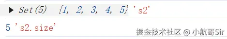 console.log(s1.size, 's1'); // 3