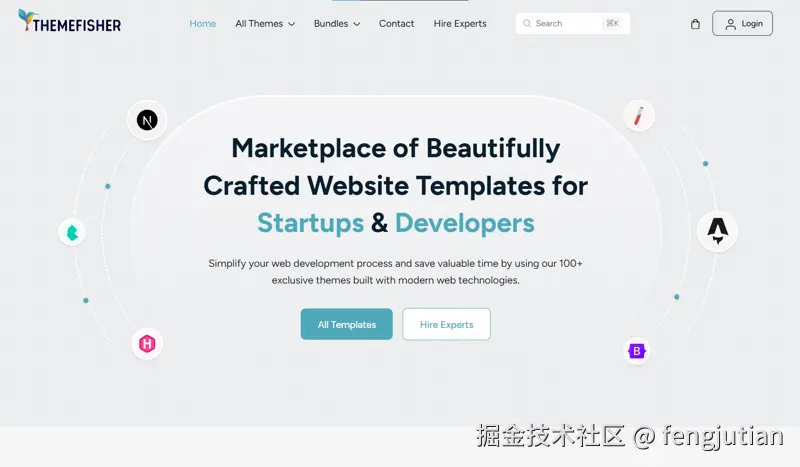 Themefisher 提供可定制且 SEO 友好的开源 Next.js 主题。该平台提供商业、作品集和 SaaS 模板,使其成为开发者的绝佳选择。