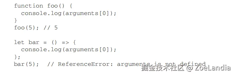 如果函数是使用箭头语法定义的,那不能使用 arguments 关键字访问传给函数的参数,只能通过定义的命名参数访问