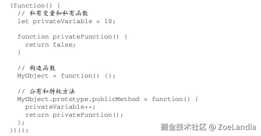 这个模式是把所有私有变量和私有函数都定义在构造函数中,再创建一个能够访问这些私有成员的特权方法,其特权方法其实是一个闭包,因此可行