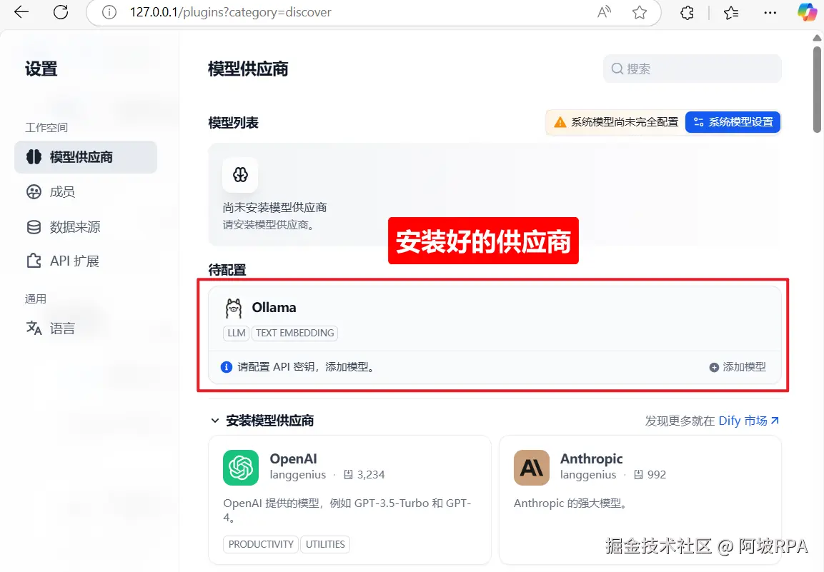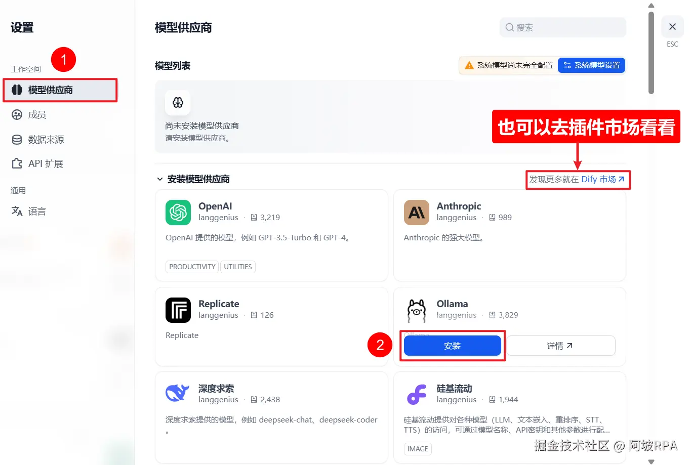 其实就是老版本模型供应商的集合,后续如果新增供应商的话,就需要到这里找了,当然你还是可以从老入口去接入大模型,操作体验没变,只是需要先安装在配置:
