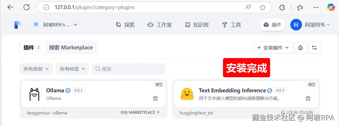 但是,安装插件过程中,我发现速度比较慢,可能跟网络有关系,懂的都懂,安装完成后,需要刷新下页面,甚至需要刷新多次,才能看到已安装好的插件: