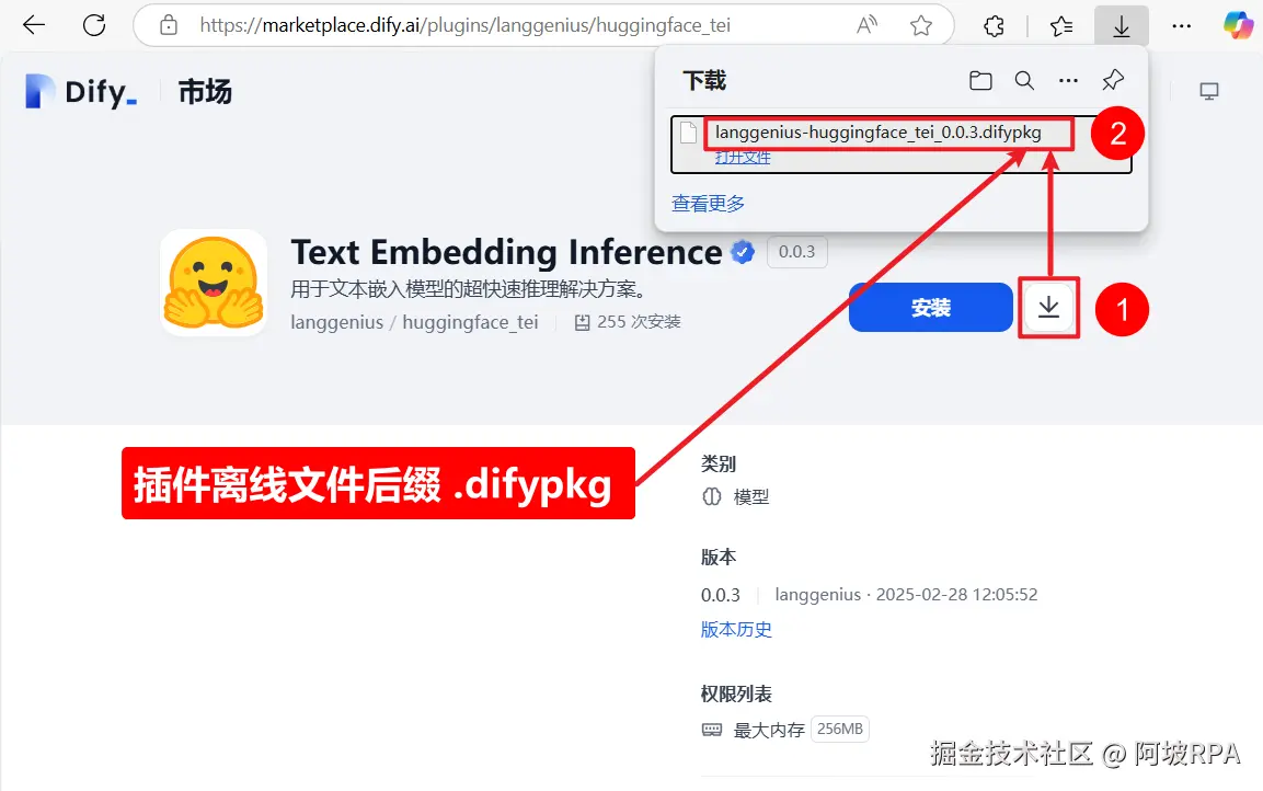 有些时候,由于网络原因,Dify的市场插件可能下载很慢,我们可以委托别人下载,然后直接发给自己,然后从本地安装。
