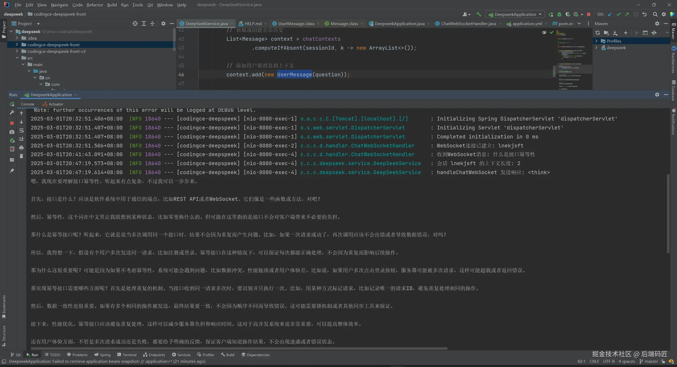 关注gzh后端码匠,回复"DeepSeek2"消息即可获取完整源码。