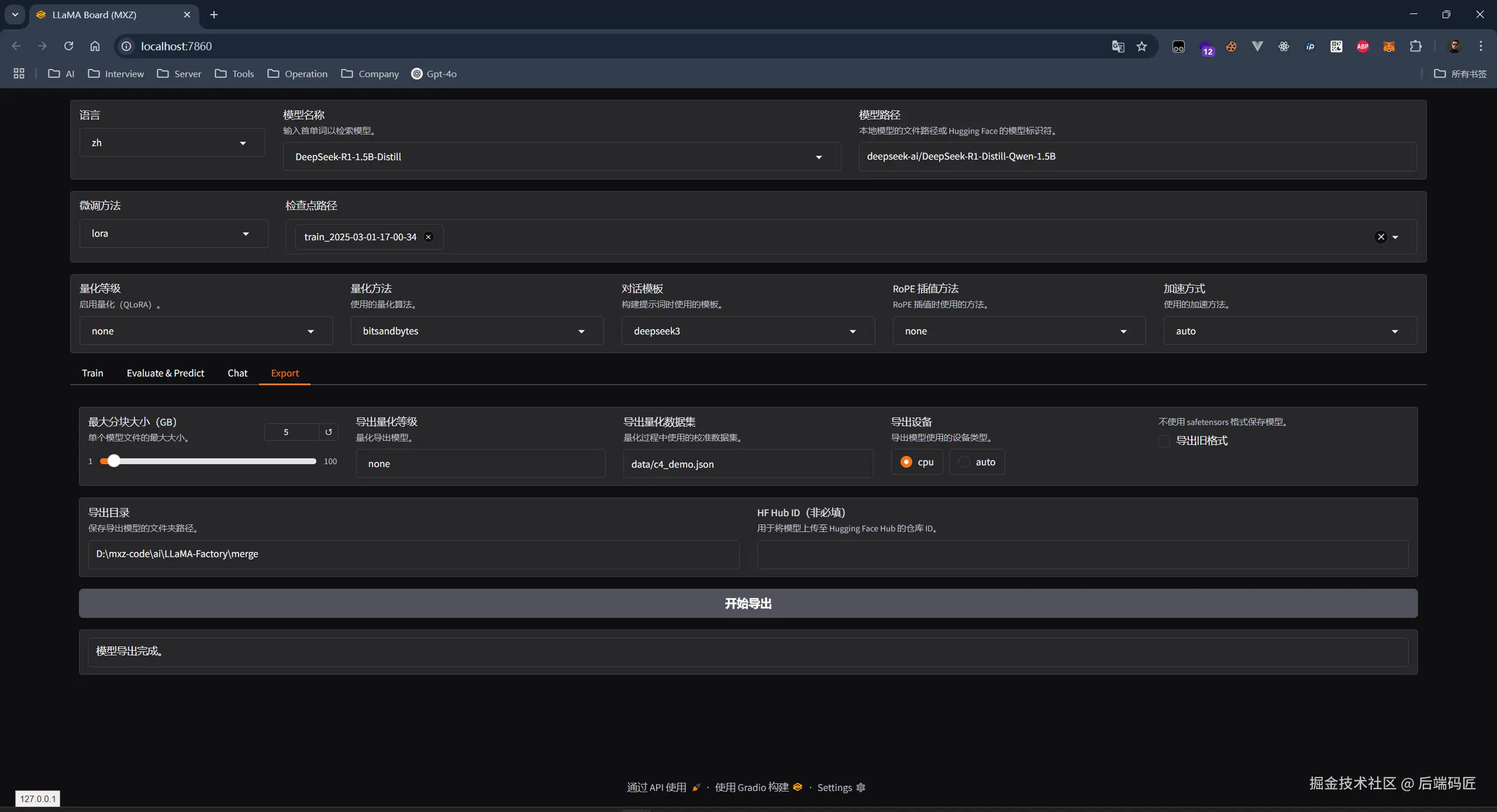 导出微调模型