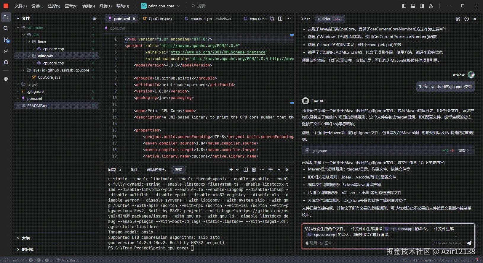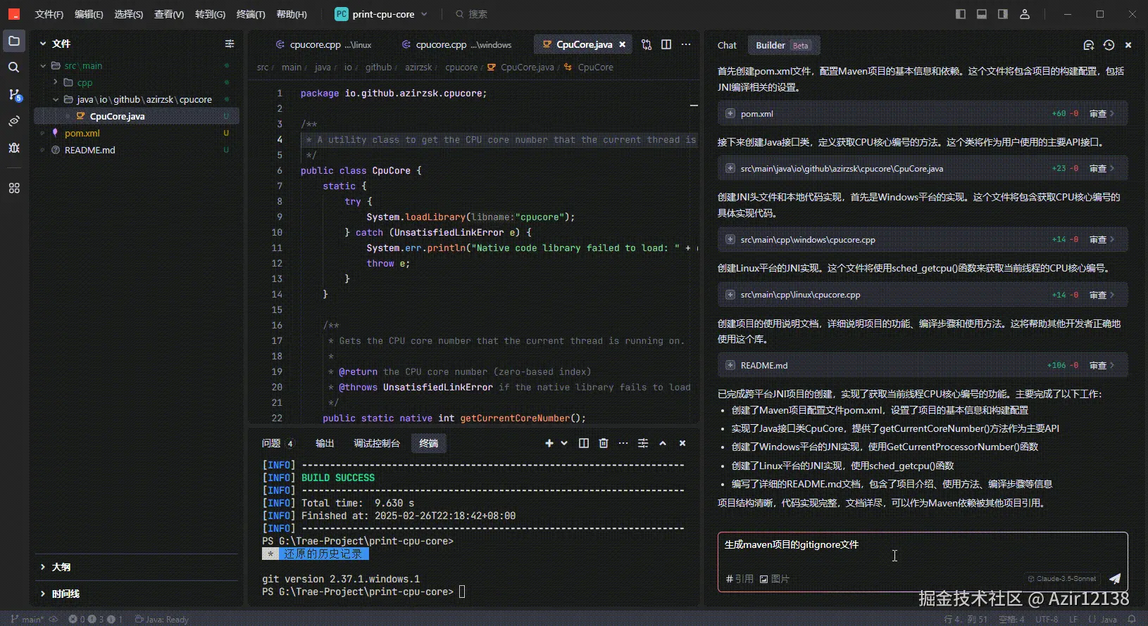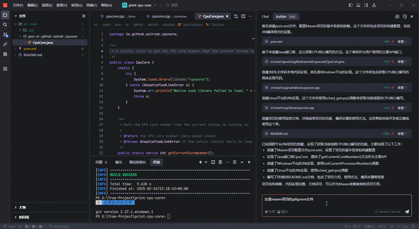我的述求就是生成一个Maven项目,这个Maven项目的作用是:提供一个API,打印当前线程所使用的CPU核心。