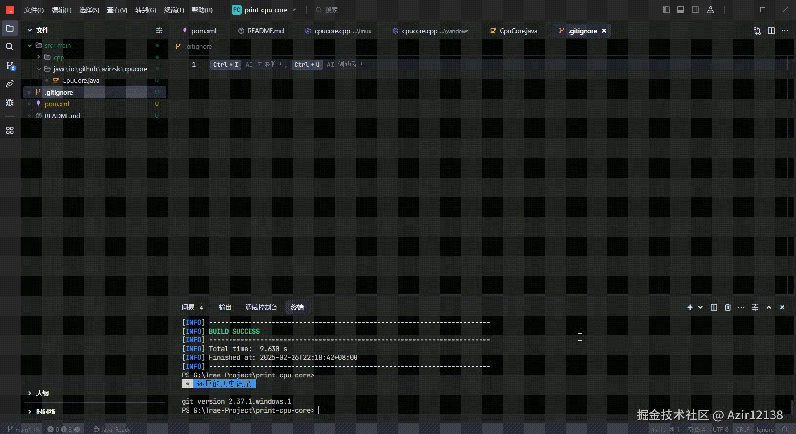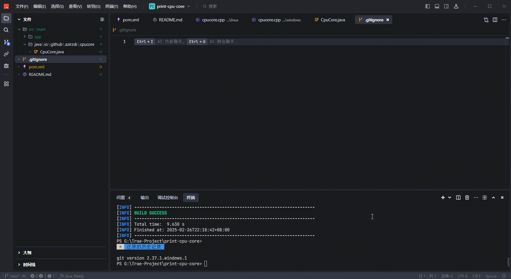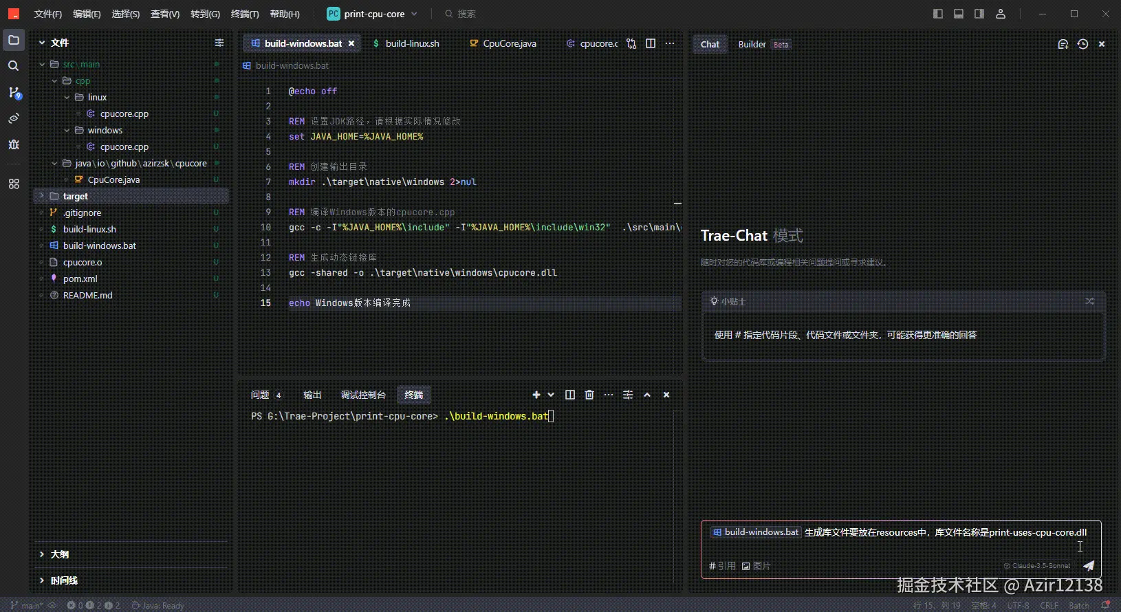 回退成功后,回到我们的正题,这次不让Trae帮我们生成全自动的编译指令了。而是让它给我们在一个文件中生成编译.so以及.dll库文件的命令,我们手动执行看看。