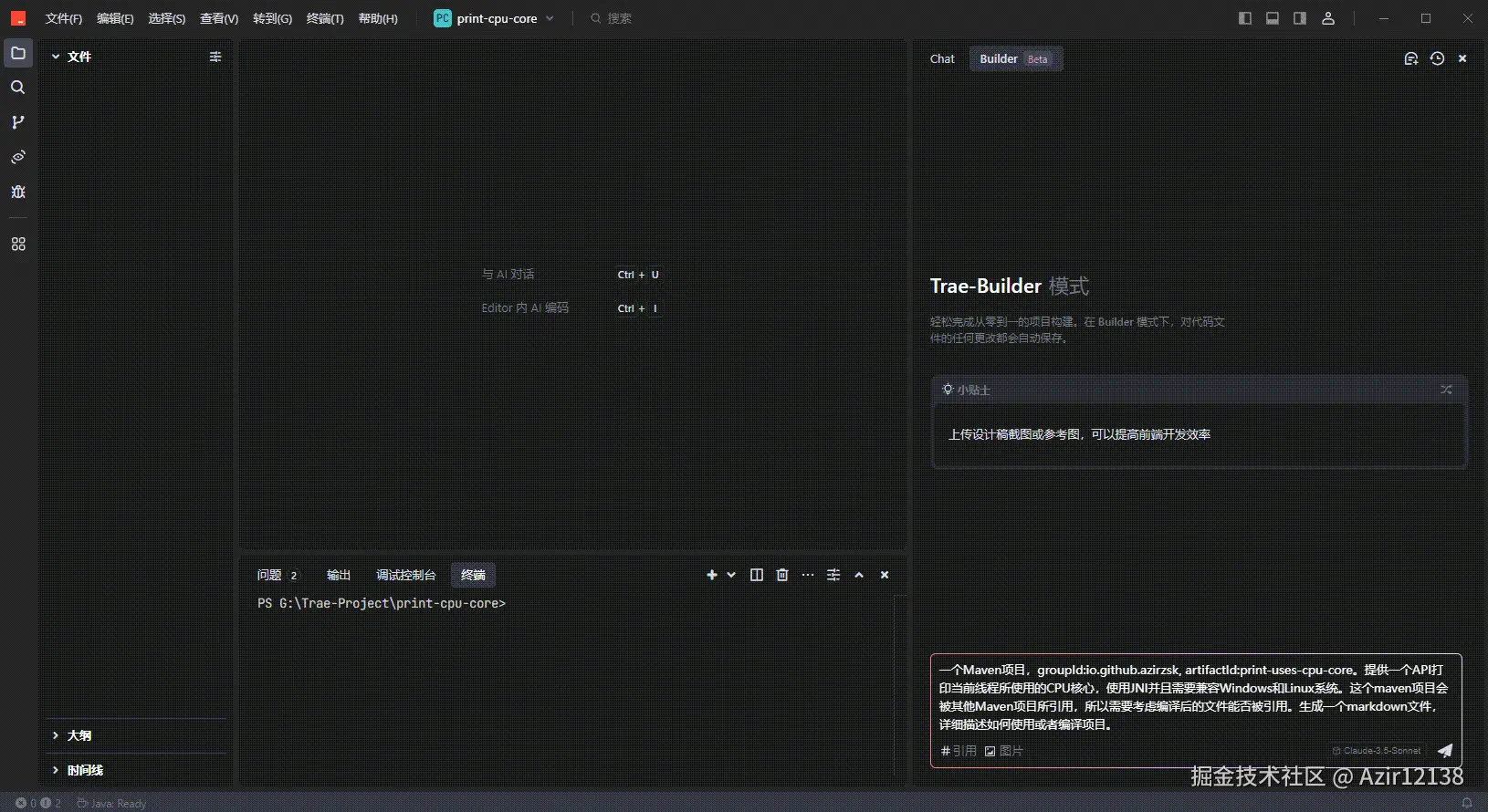 此时我们把我们想做的事情,也就是上面的这句话复制Trae中,看看生成的效果。