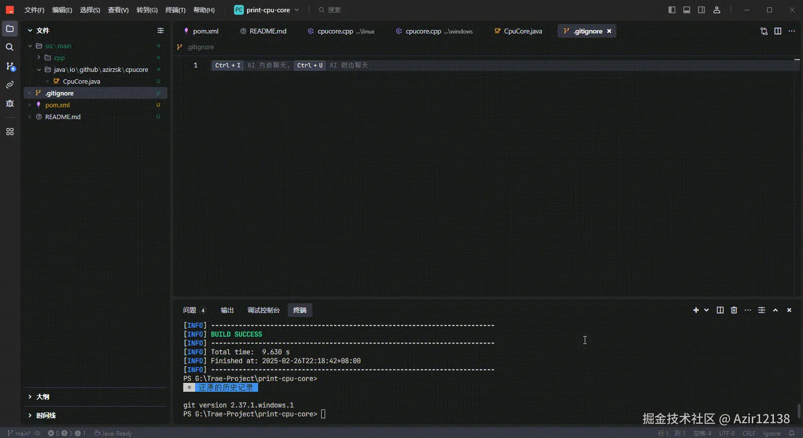 - 生成gitignore文件后,IDE无法展示文件内容(偶现)。