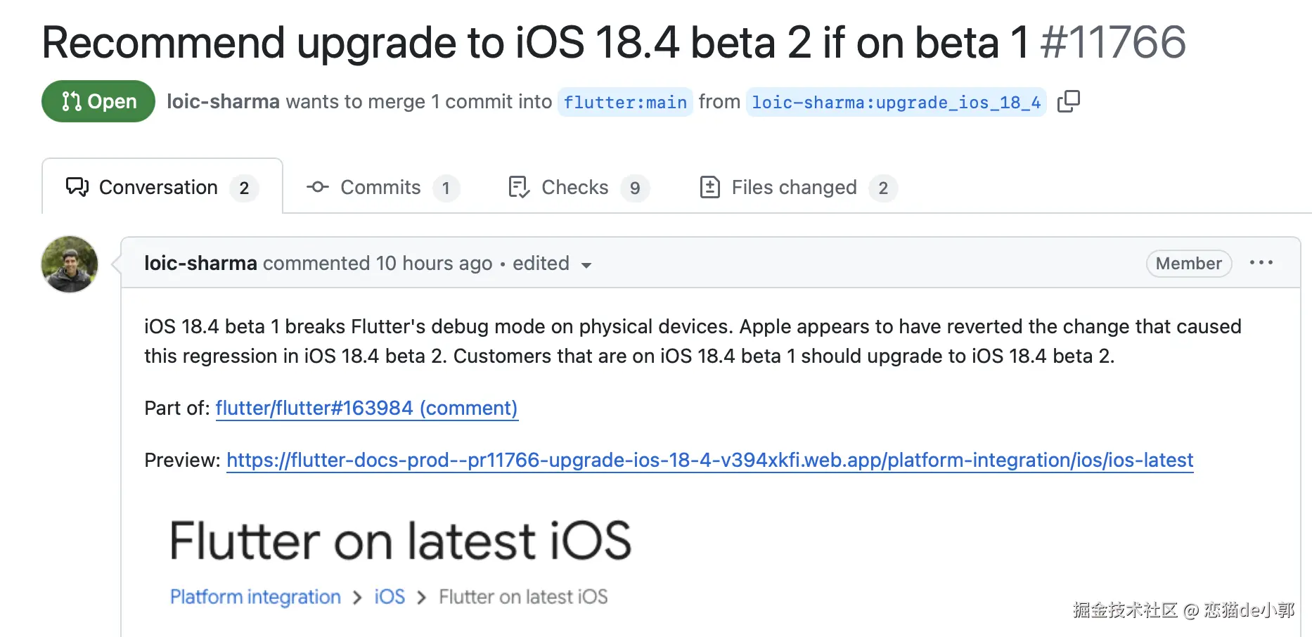那么到这里你应该大概了解了问题的原因,目前 Flutter 官方表示:在他们热修复此问题之前,尽可能先请不要升级到 iOS 18.4 beta。