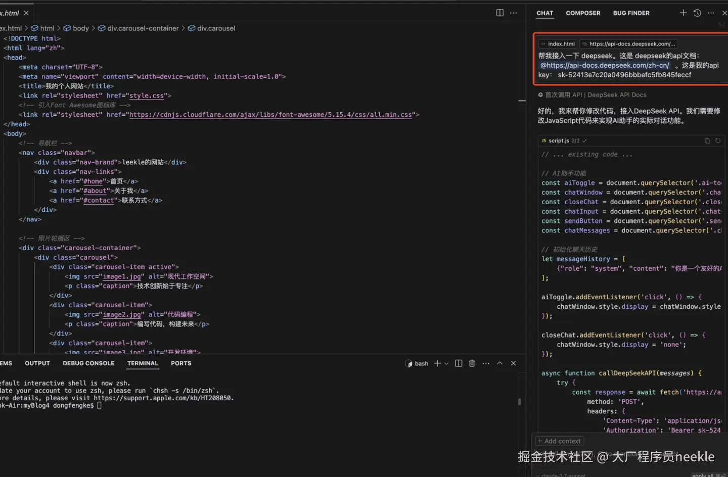 将deepseek的官方文档api-docs.deepseek.com/zh-cn/和你的ap… key告诉cursor,让cursor帮你对接deepseek api。