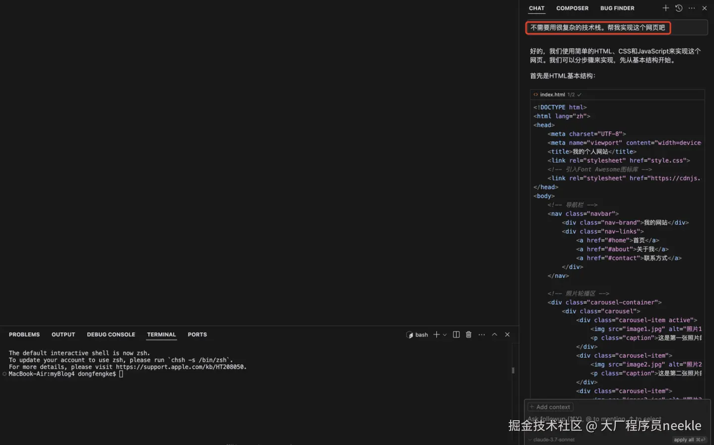 AI coding是大模型的重要应用领域。在claude 3.7发布后,cursor的编码能力又上了一个台阶。本文利用cursor claude 3.7 生成个人网页和deepseek智能助手。