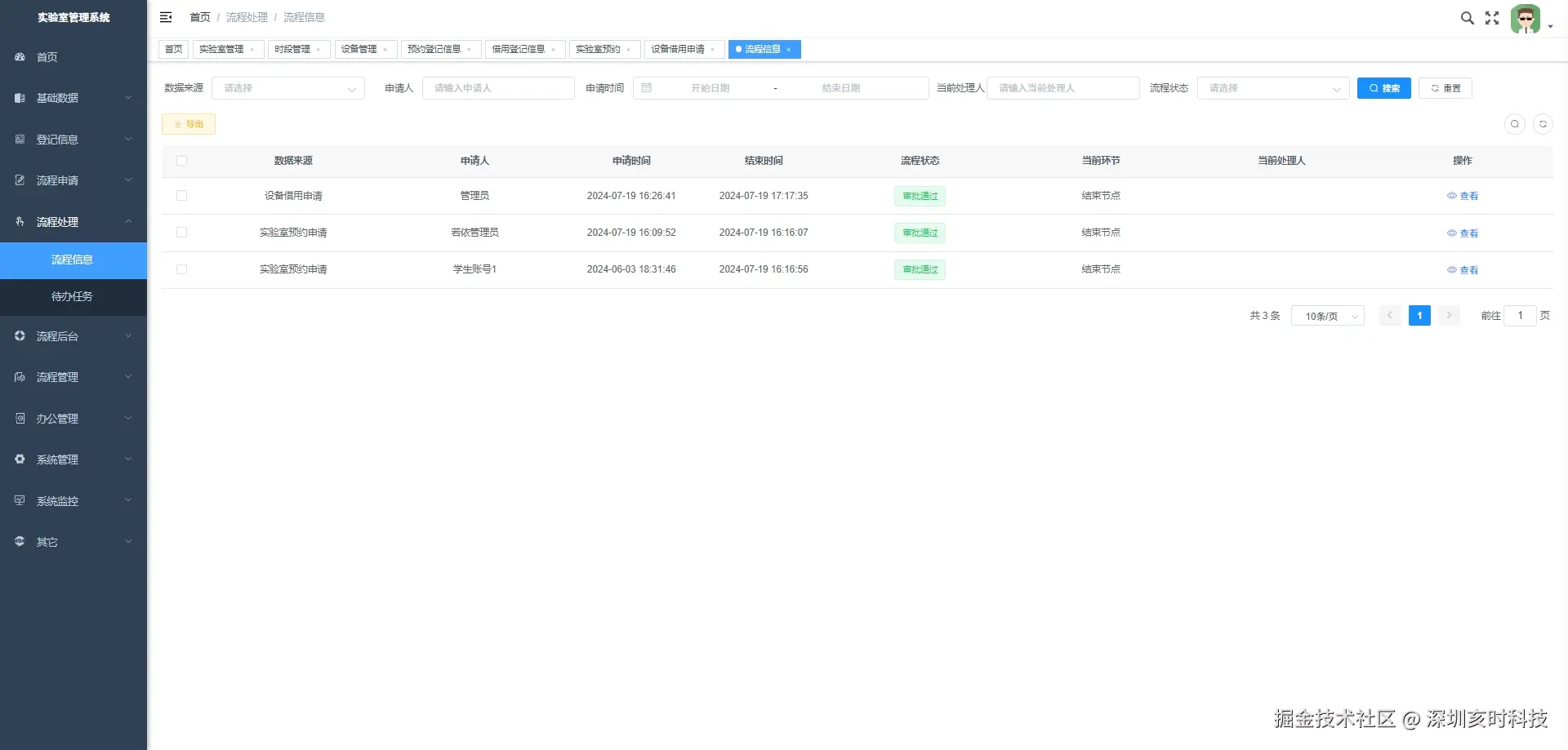 - 设备借用申请:处理实验室设备的借用申请,包括申请提交、审批和记录。