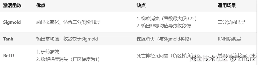 26. 什么是激活函数?列举常见激活函数以及它们的优缺点