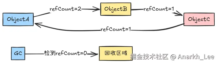 循环引用问题:即使对象间互相引用,但因外部引用断开,实际已成为垃圾却无法被识别