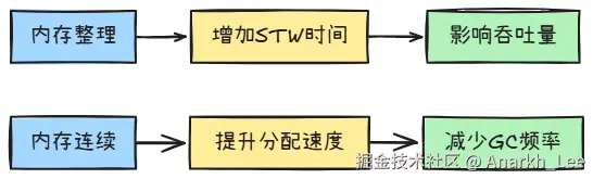 - 清除后内存空间不连续,导致分配大对象时触发Full GC