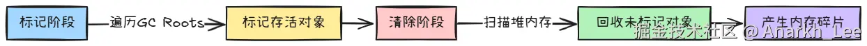 - 清除阶段:线性遍历堆内存,回收未被标记的对象块