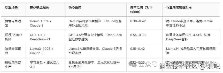 四、在职从业者选型方案:职业场景与模型能力精准匹配