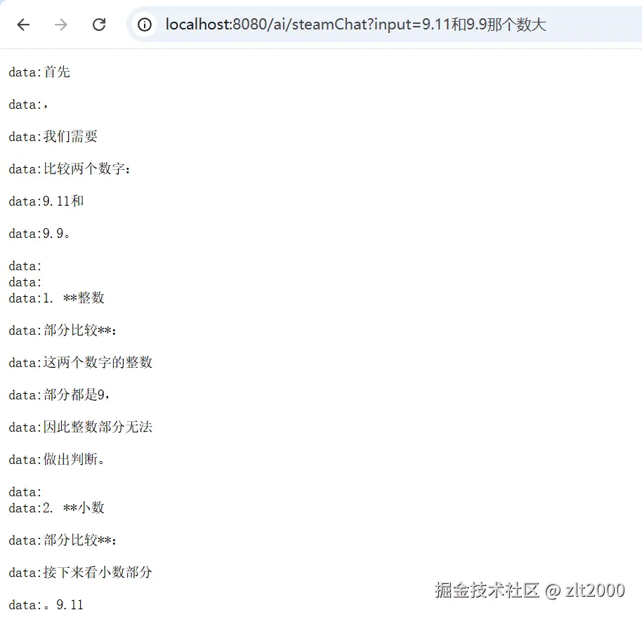 Server-Sent Events的格式要求;- 需要前端搭配 EventSource 或 WebSocket 等方式来接收流式数据,并结合 marked.js 来正确显示 markdown 语法。