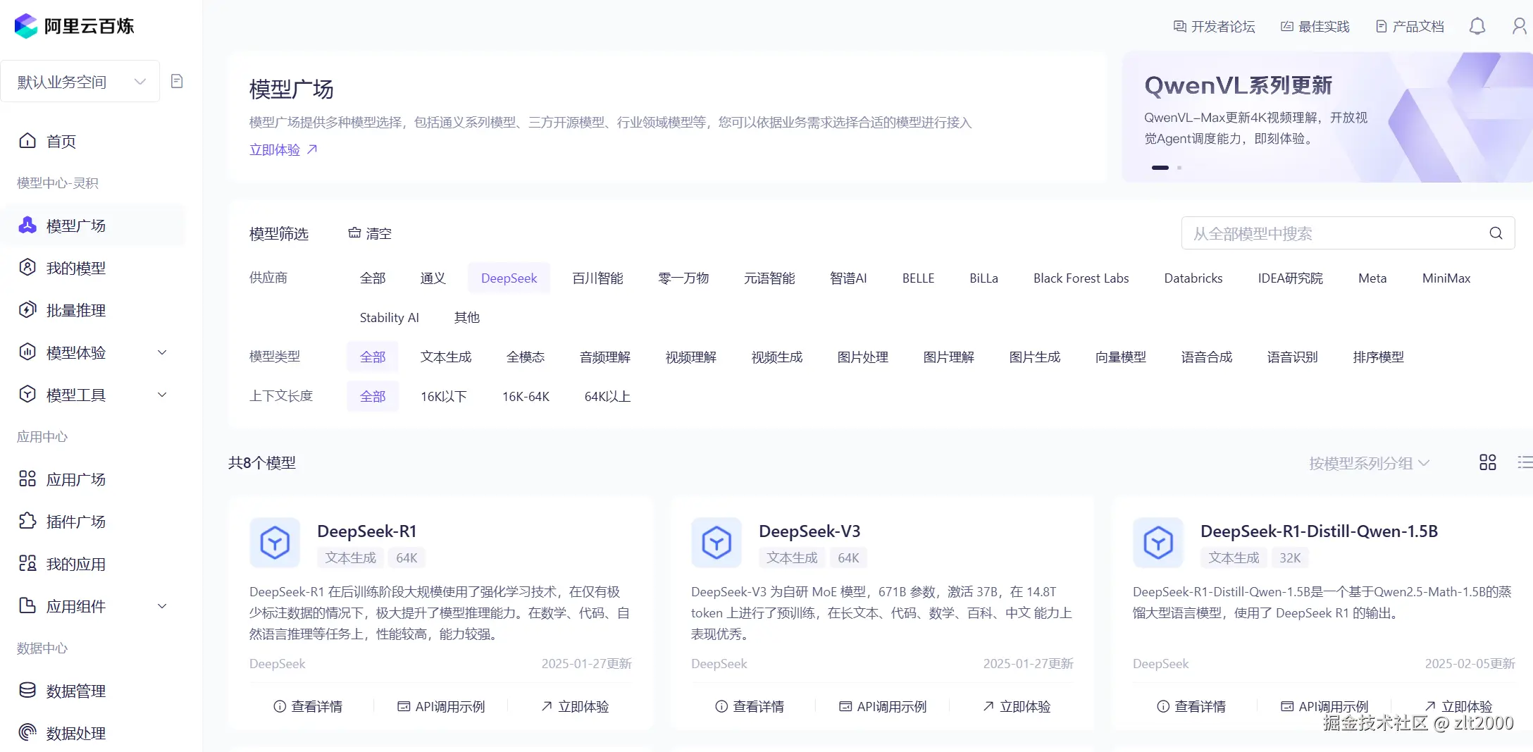 相较于直接调用 DeepSeek 官方的 API,阿里云百炼基于阿里云强大的云计算基础设施,提供了高可用性和稳定性的服务,并且支持程序运行时动态切换 模型广场 中的任意大模型。