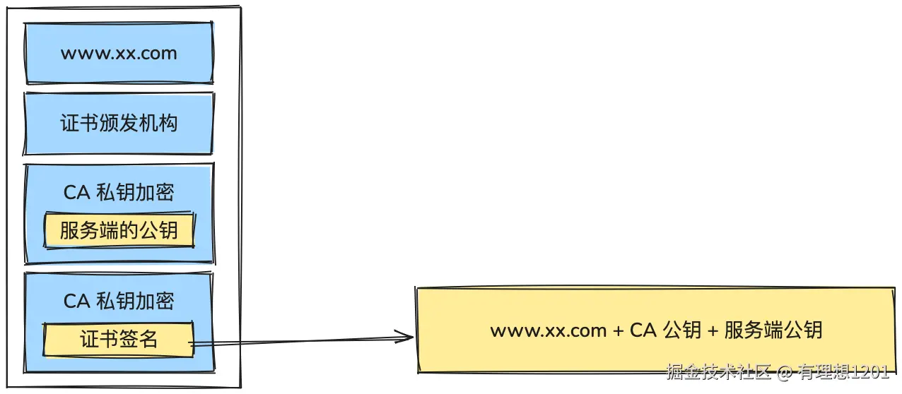 - 使用 CA 机构私钥「加密后」的服务器公钥;