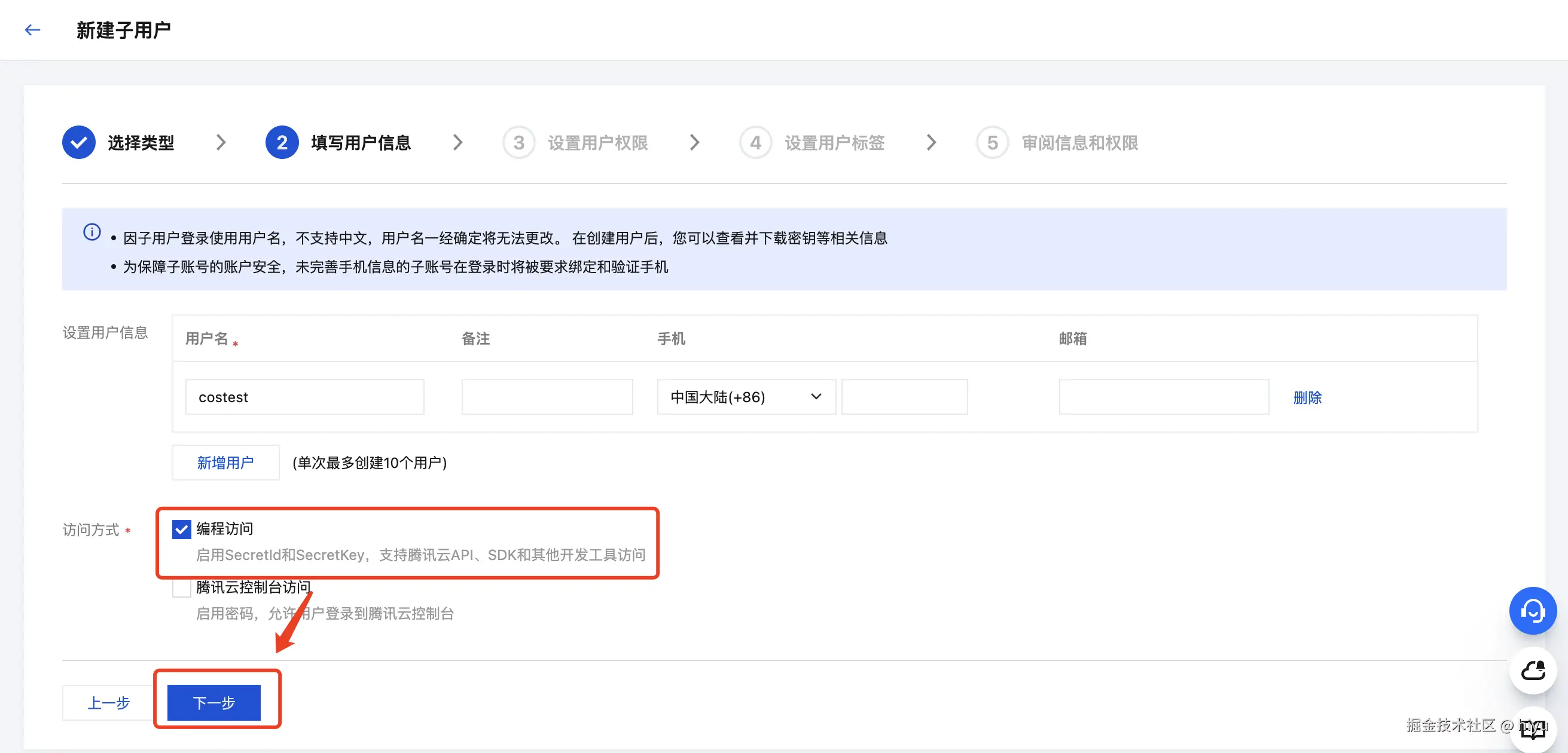 新建子用户