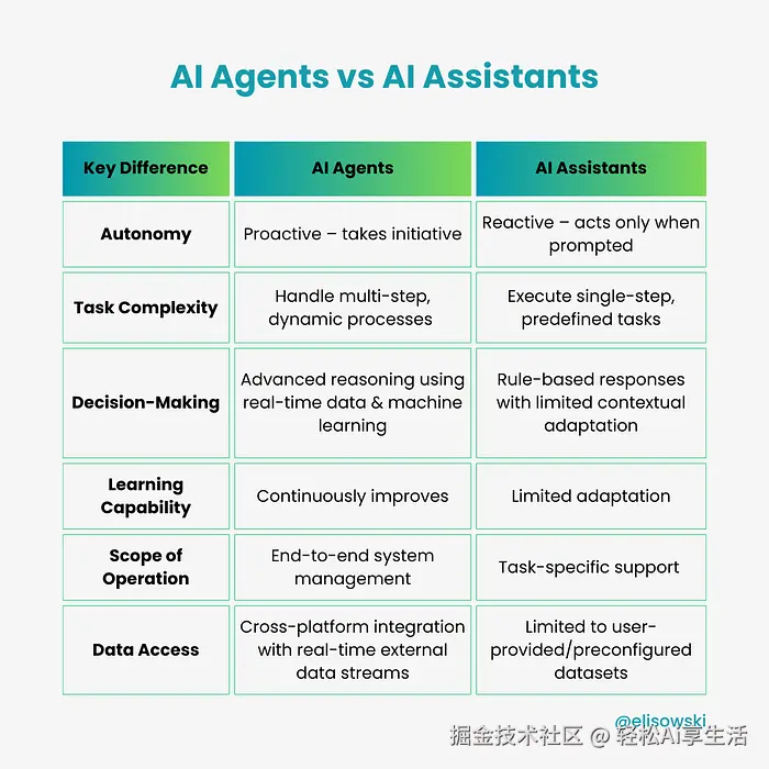 还记得《黑神话:悟空》凭借UE5引擎带来的画面革新惊艳全球吗?其实,AI领域也在经历着类似的“画质升级”。今天让我们从一个更接地气的角度聊聊AI世界的两大灵魂人物:AI Assistants(助手)和AI Agents(代理)。