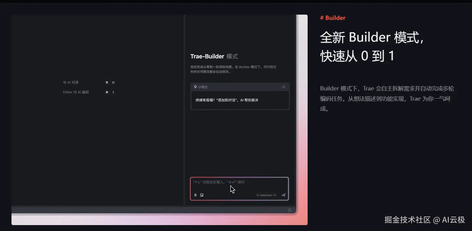 💡 Trae 不是传统 IDE + AI 插件,而是 AI 原生 IDE!