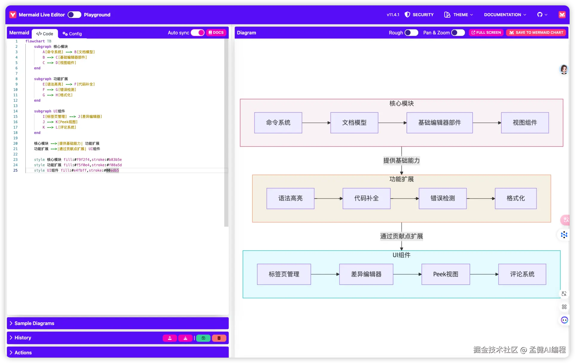 我们用 mermaid 在线工具看一下架构图的效果: