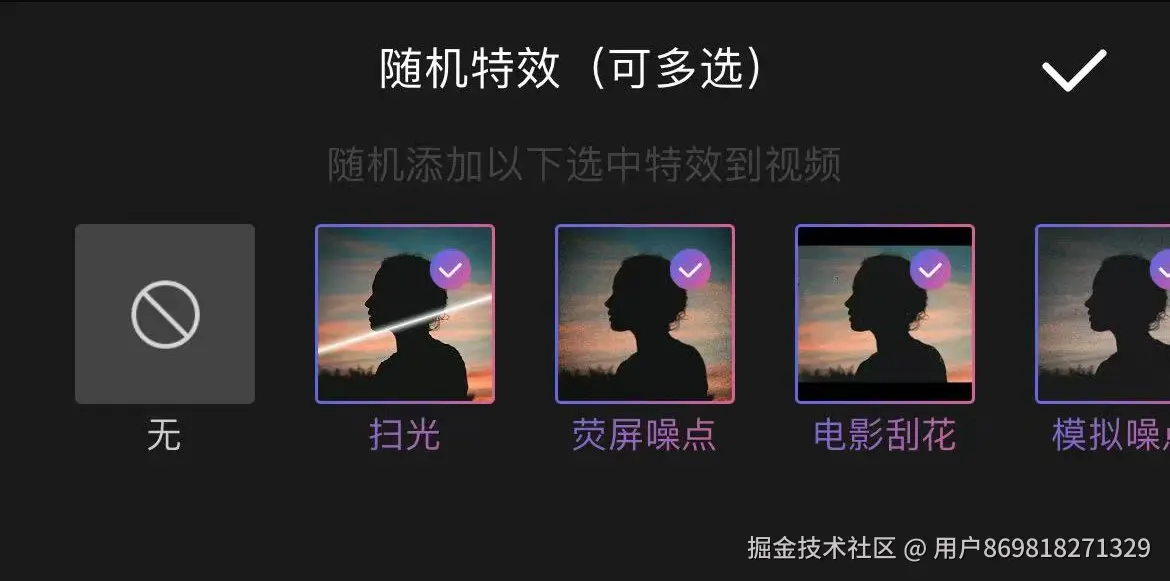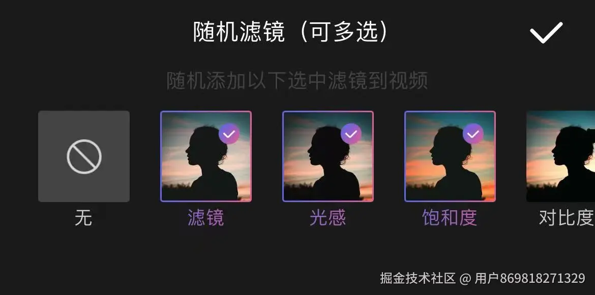 3.随机滤镜:拥有丰富的滤镜库,每一次生成视频会随机提供多个滤镜效果,为画面一键调色。