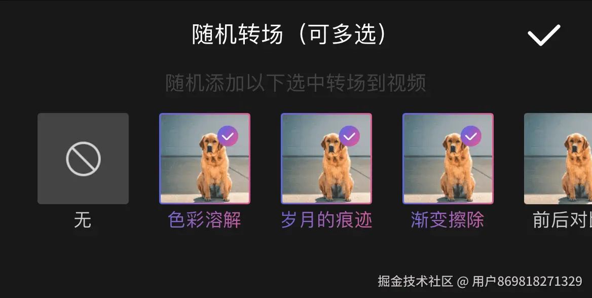 5.随机转场:它可以在不同视频片段之间随机添加转场效果,如淡入淡出、旋转切换、闪白过渡等,使视频之间的衔接更加自然流畅,同时也为整个系列视频增添多样性。