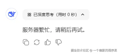 平时使用 Deepseek 时经常遇到这种情况,从年前到现在,它的热度就没有消停过,Deepseek迎来了接入潮,访问使用量急剧上升。 他真的尽力了!