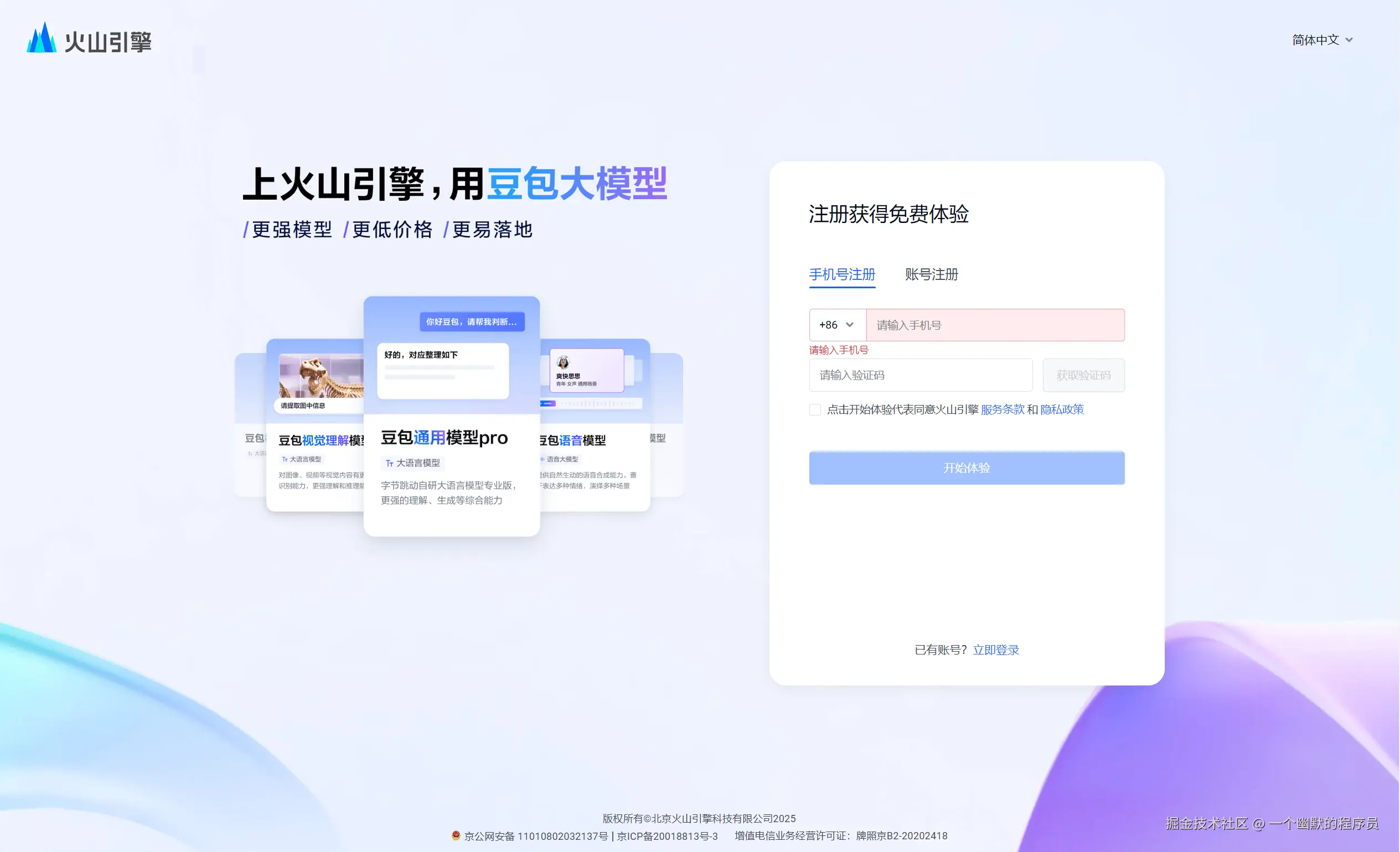 步骤一:注册火山引擎账号并登录
