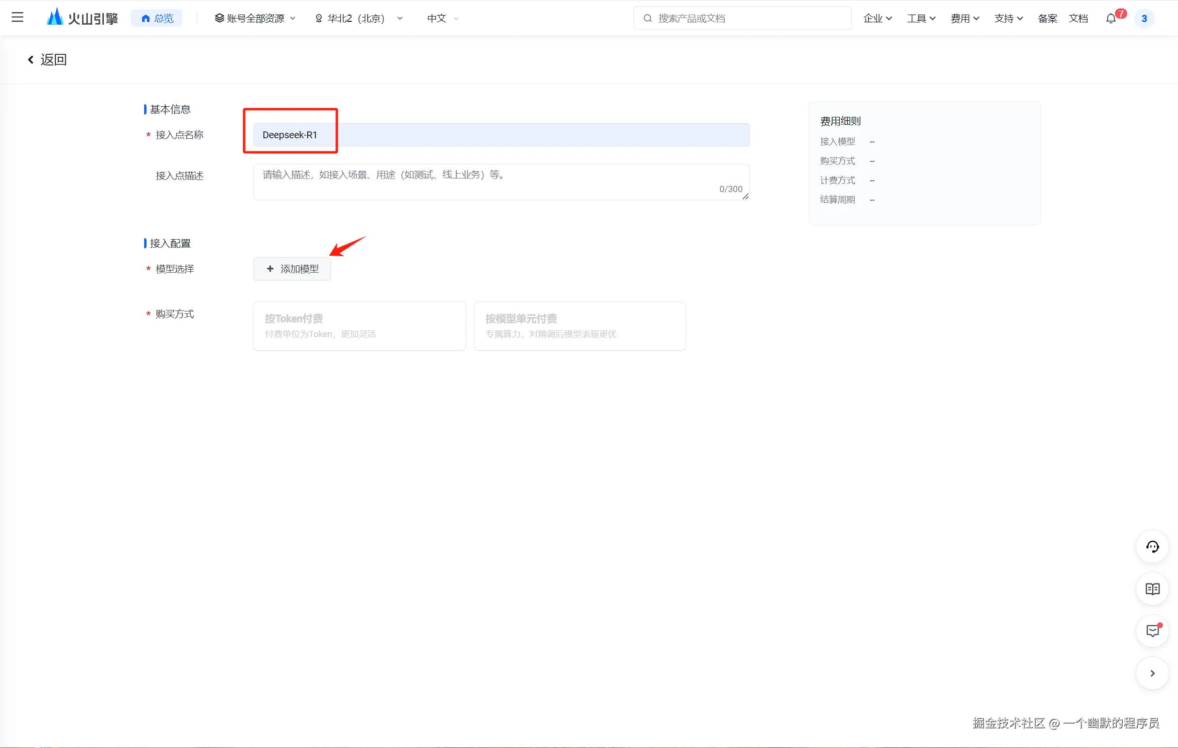 - 在弹出的页面中,接入点名称随便起一个,然后点击下面的添加模型。